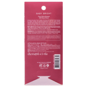 احمر الخدود فيس شاين من بيبي برايت Blusher Face Shine سيمنح وجنتيكِ مظهرًا متوهجًا لا يُضاهى! فهو يأتي بظل ذو نعومة فائقة وطبيعي يدوم لساعات طويلة دون أن يتلاشى، مما يضفي لمعانًا دقيقًا وسلسًا على بشرتك.