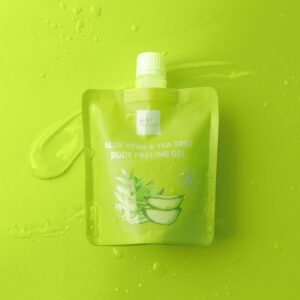 - ثم ضعي جل تقشير الجسم بخلاصة الصبار والشاي بيبي برايت على الجسم ، خاصة على المناطق الجافة والخشنة.