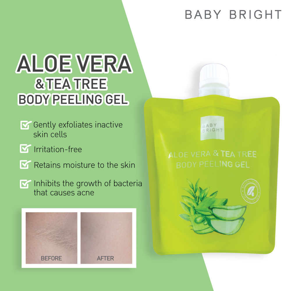 - جل تقشير الجسم بخلاصة الصبار والشاي بيبي برايت للاستخدام الخارجي فقط