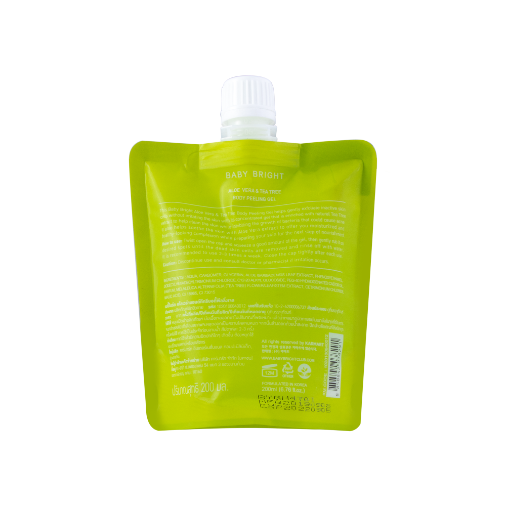 - افتح غطاء جل تقشير الجسم بخلاصة الصبار والشاي بيبي برايت