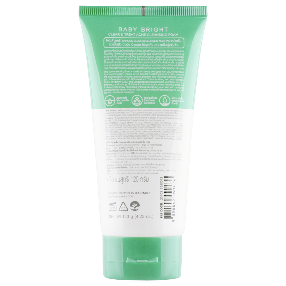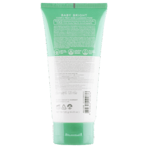 يحتوي رغوة بيبي برايت لتنظيف البشرة من حب الشباب على زيت شجرة الشاي وحمض الساليسيليك، مما يساهم في منع تراكم البكتيريا المسببة لحب الشباب، ويقلل من آثار التجاعيد والندوب، ويساعد أيضًا في تهدئة حب الشباب الملتهب بفضل خلاصة البصل.