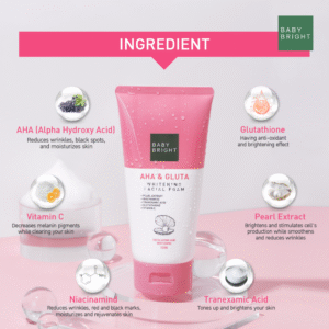 - رغوة تبيض ومنظف للوجه بيبي برايت برائحة حمض اللاكتيك وجلوتا للاستخدام الخارجي فقط