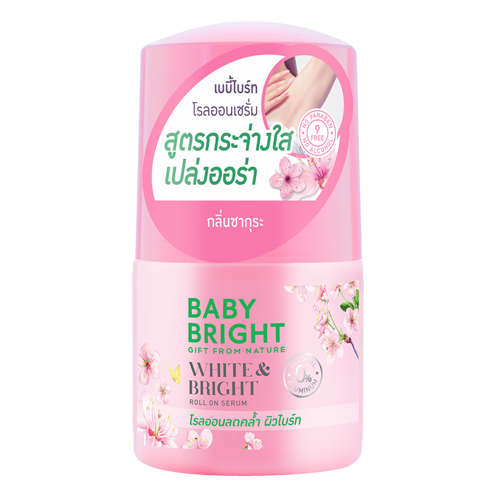 عناية متكاملة تحت الإبطين مع سيروم White & Bright Roll-On من Baby Bright. يمنحك حماية تدوم حتى 24 ساعة بتركيبة خفيفة غير لزجة تمتصها البشرة بسرعة وتتركها منتعشة ومشرقة طوال اليوم.