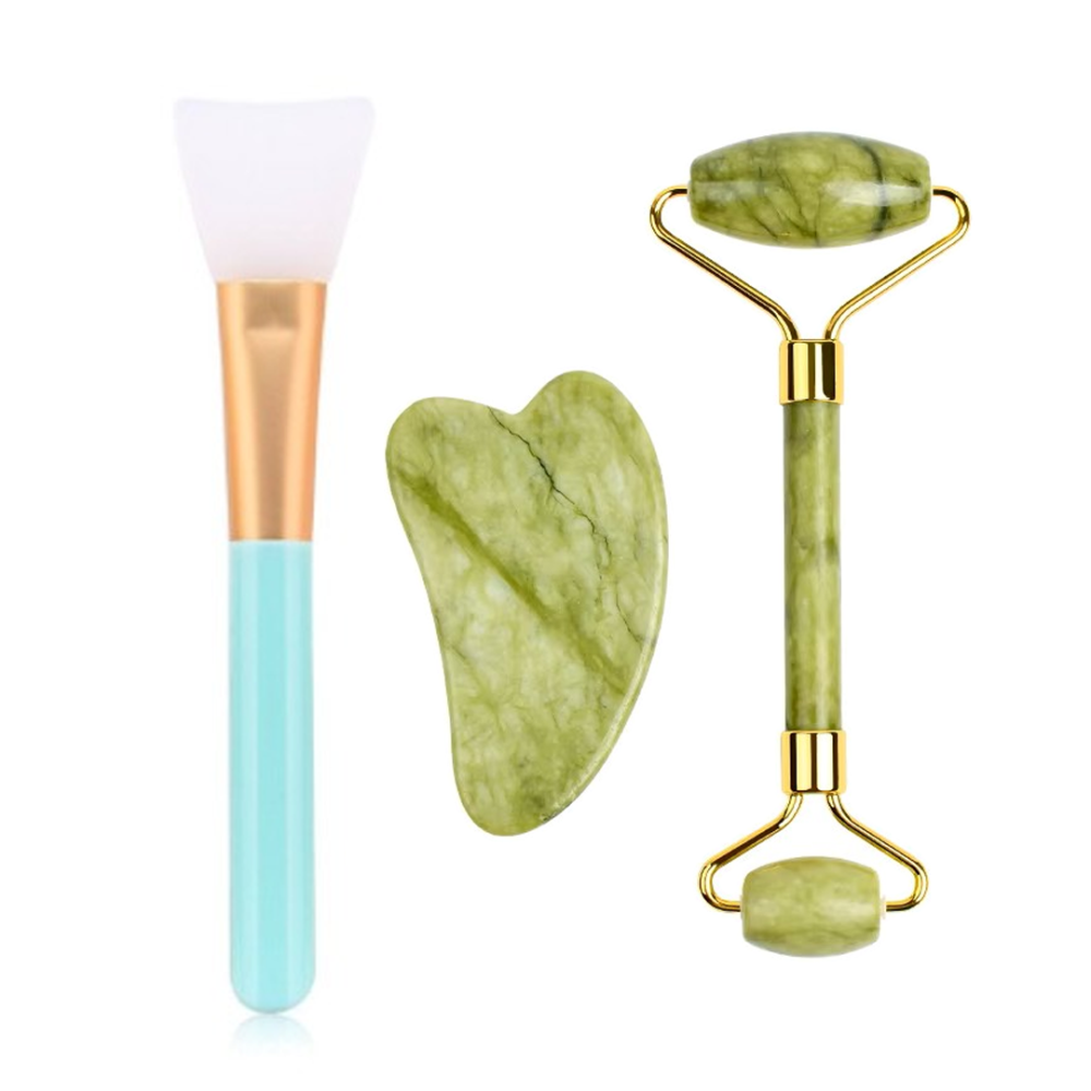 مجموعة العناية بالوجه 3 قطع – رول مساج سيراميك + قطعة تدليك سيراميك + فرشة سيليكون لماسك الوجه