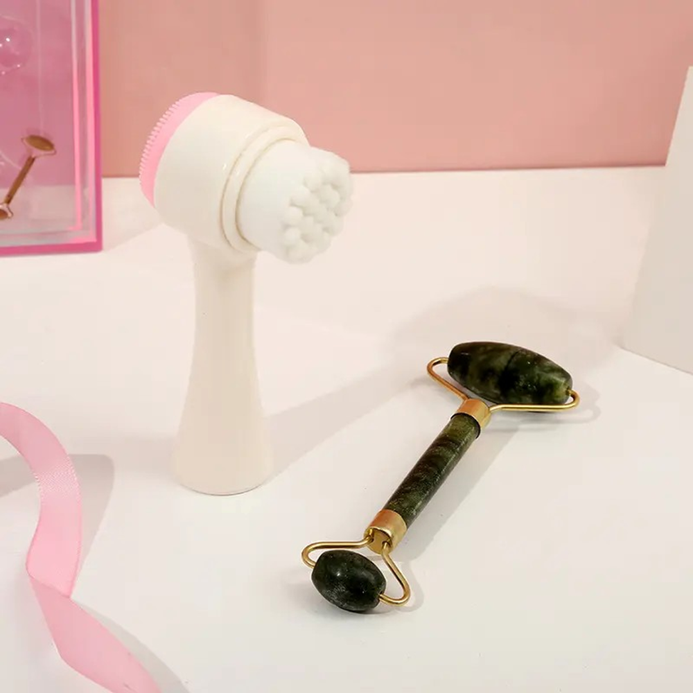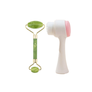 فرشاة تنظيف الوجه ومساج جايد من متجر بيوتي سلكت بسعر مثالي يساعد على تنظيف الوجه بعمق وإزالة الشوائب والزيوت الزائدة والخلايا الميتة كما أن الجايد رولر المريح يساعد على تحسين مظهر البشرة بتحفيز الدورة الدموية وتحسين مرونة الجلد يمكن استخدامها بسهولة في المنزل أو خلال السفر. امتلكي هذا الطقم الآن واستمتعي ببشرة نظيفة وجميلة.