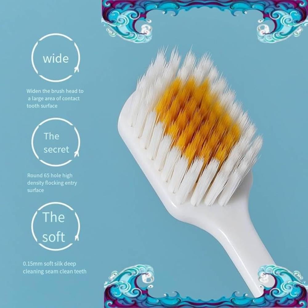 فرشاة أسنان تتميز بشعيرات ناعمة ورفيعة لا تؤذي اللثة وتمنحك نظافة دقيقة للأسنان.