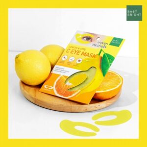 قناع العين بالليمون وفيتامين سي من بيبي برايت بشكل C الفريد يحتوي على مستخلصات مغذية مثل خلاصة فاكهة الليمون الحمضية وحمض L-ascorbic (فيتامين C) ومستخلص التوت. تحتوي هذه المستخلصات على مضادات الأكسدة التي تعمل على تحفيز الدورة الدموية حول منطقة العين، وتعزيز تقشير خلايا الجلد، وتقليل التجاعيد.