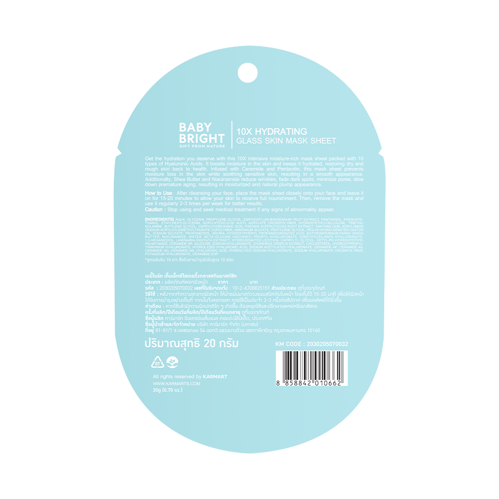 احصلي على الترطيب الذي تستحقينه مع 10X Glass Skin Mask من Baby Bright. قناع ورقي غني بـ 10 أضعاف الترطيب بفضل تركيبته المتطورة التي تحتوي على 11 نوعًا من حمض الهيالورونيك لتغذية البشرة بعمق، استعادة نضارتها، وتعزيز إشراقتها الطبيعية.