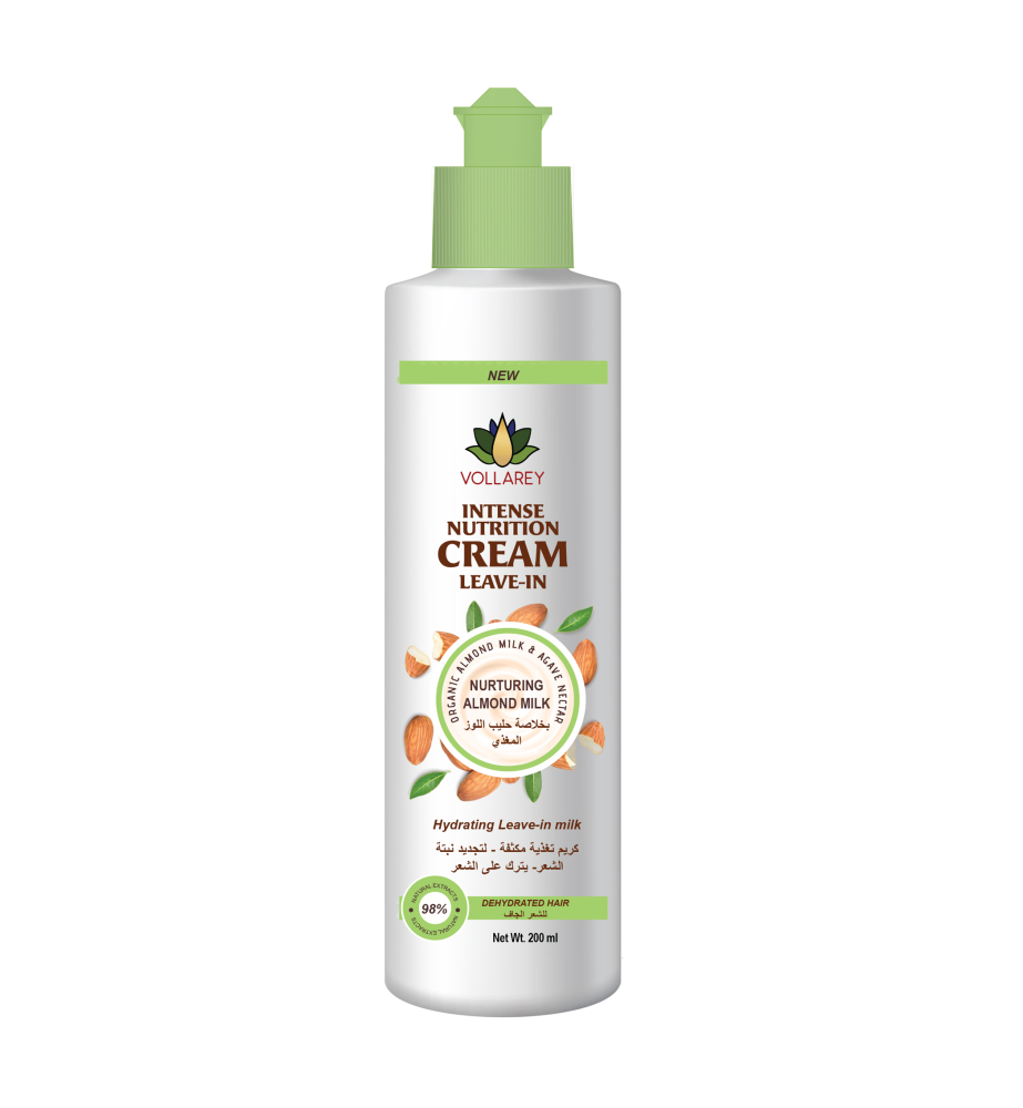 كريم مغذي مكثف بدون شطف، غني بحليب اللوز والمكونات الطبيعية لإصلاح وتغذية الشعر من الجذور حتى الأطراف.
