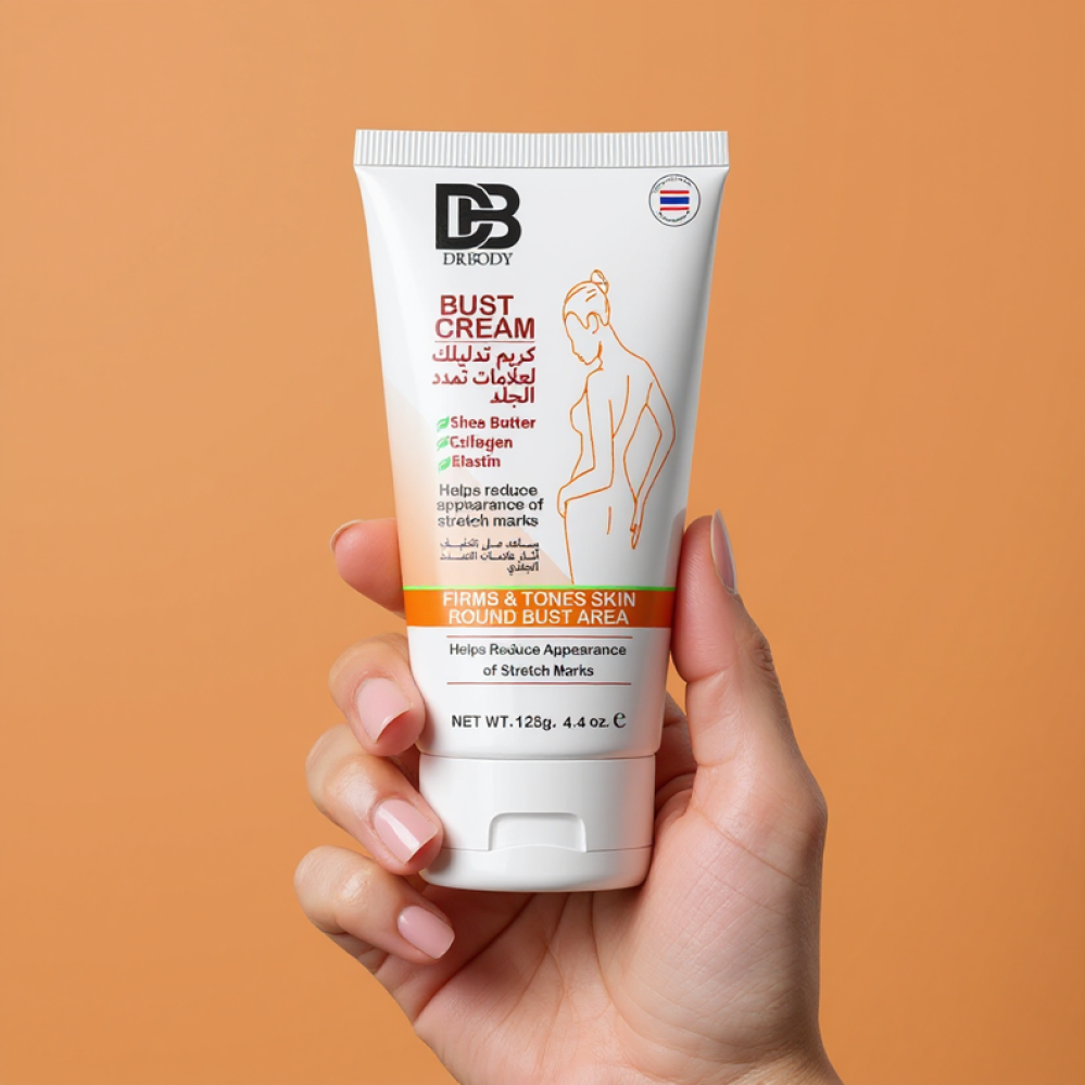 - كريم تدليك لعلامات تمدد الجلد من دكتور بدي، لتقليل علامات تمدد جلد البطن والأوراك والأفخاذ والصدر.