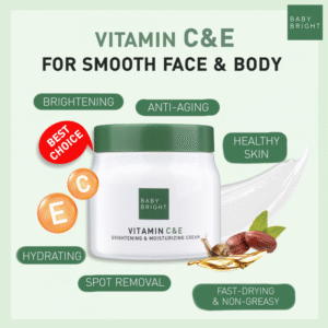 فوائد كريم تفتيح وترطيب فيتامين C و E من بيبي برايت: