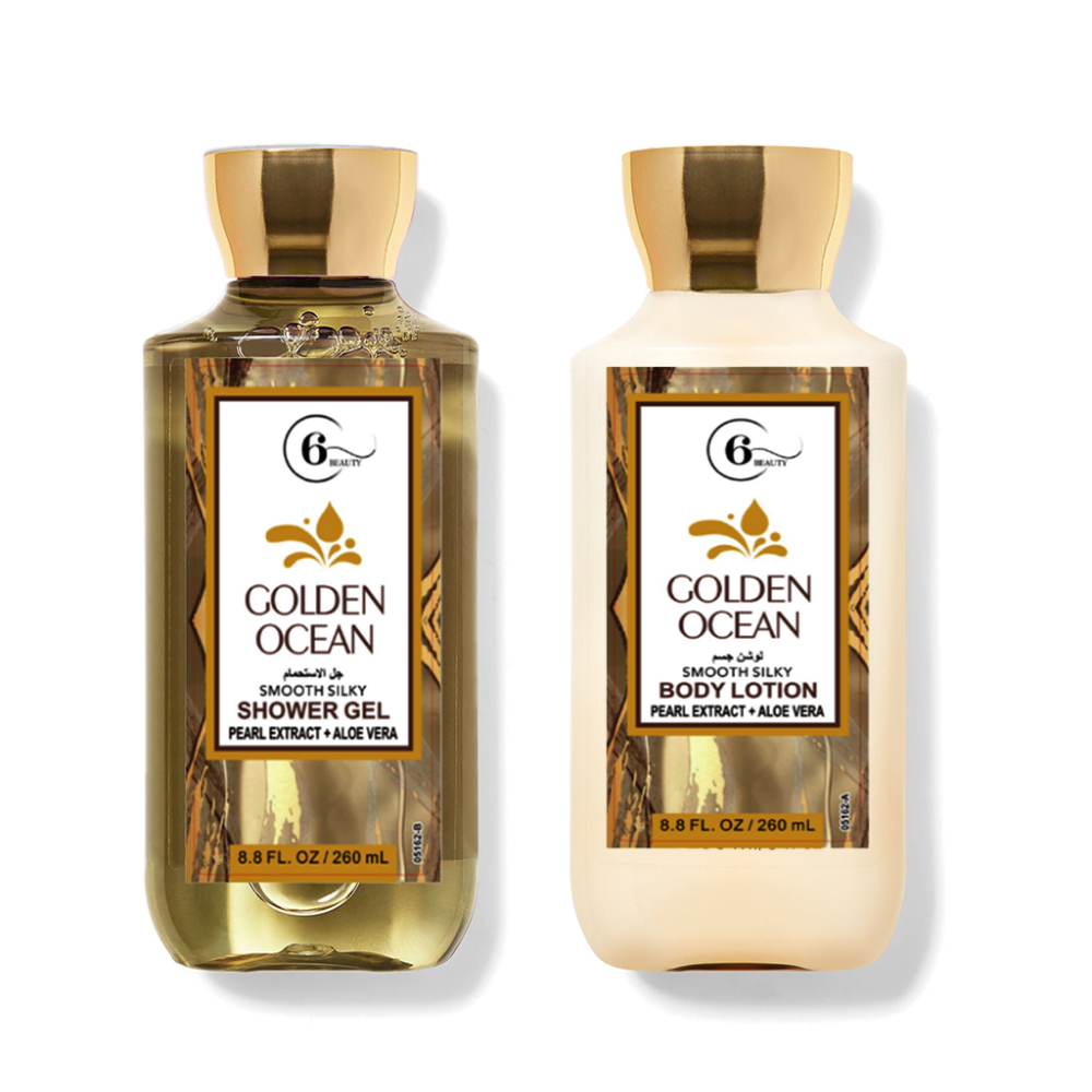 مجموعة جولدن تاتش من 6 بيوتي – لوشن وجل استحمام بخلاصة اللؤلؤ والألوفيرا