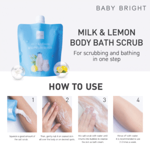 طريقة استخدام مقشر الجسم الطبيعي للاستحمام بالحليب والليمون من بيبي برايت: